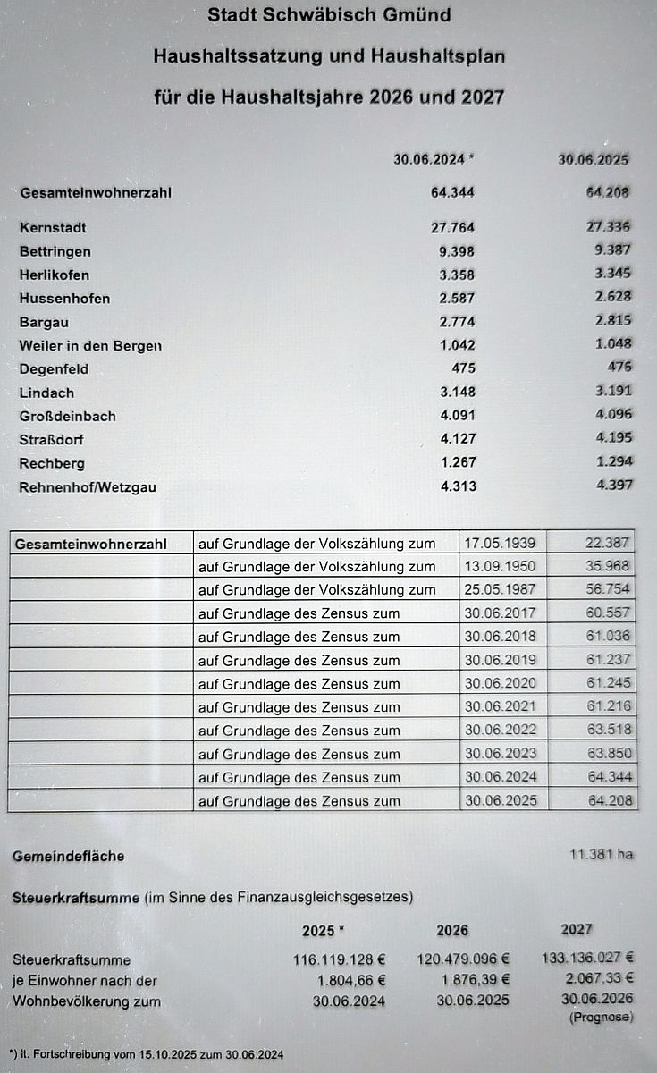 Aufgrund großer Unsicherheiten der staatlichen Prognosen zur Einwohnerentwicklung in Schwäbisch Gmünd wählt der Flächennutzungsplan-Gutachter eine eigene Berechnungsgrundlage und stützt sich dabei stark auf Zuwächse durch sich ansiedelnde Einpendler.